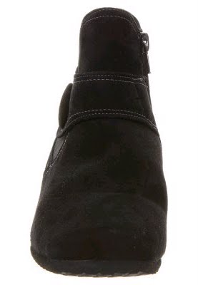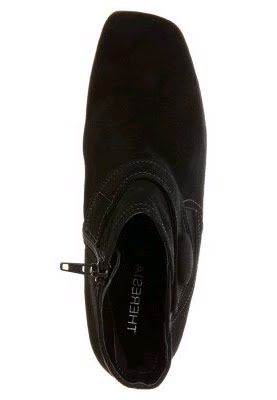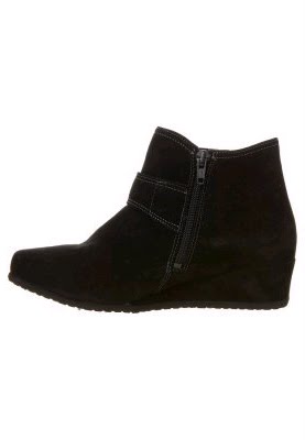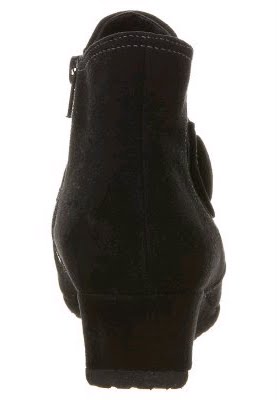 Aveludado preto e - o novo boot tornozelo de Theresa M. O couro preto é fornecido aqui um pouco com costuras contrastantes d?o o sapato da mesma cor ao lado do cinto sobre o eixo dianteiro um toque elegante. O curta, é coberto com salto anabela de couro, percebida somente na segunda olhada. O material zíper e elástico no eixo permitem fácil entrada e um bom suporte. Aveludado elegancia - a bota preta nova tornozelo por Theresa M.